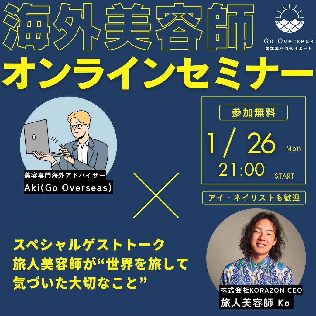 海外に⾏ったら美容師としてどんな⾃分に変わるのか?どんな可能性が広がるのか?そんな想いをGo Overseasにお話しください。資⾦や滞在する国、出発前の各種⼿続きなどの細かい準備のアドバイスをしながら、あなたの海外美容師としての⽬標が達成できるよう、⼀緒に考えていきます。