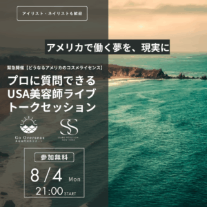 海外初心者の美容師・アイリスト・ネイリストのための『海外オンラインセミナー』。「海外で働いてみたいけど、どの国が働きやすいのかよくわからない」「どうせなら一番好きな国に行きたいけどビザやライセンスが不安」といった疑問に美容専門の海外アドバイザーがわかりやすく解説、自分が最も輝ける国で海外美容師・アイリスト・ネイリストとして活躍するはじめの一歩が踏み出せます。今回はアジアでも人気のあるシンガポールのサロンオーナーとスタイリストがゲスト参加!海外サロン現場でのリアルな美容師ライフについて知ることができます。